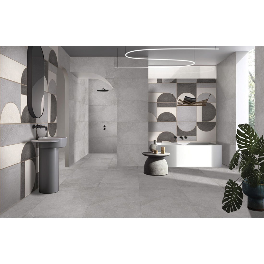A classic natural/stone effect smooth matt porcelain tile, Suitable for Walls and/or Floors replicating a stylish natural effect in a Grey with tones running through the tile. A porcelain tile which has the benefit over real natural material of durability and free of maintenance without compromising the stunning look.