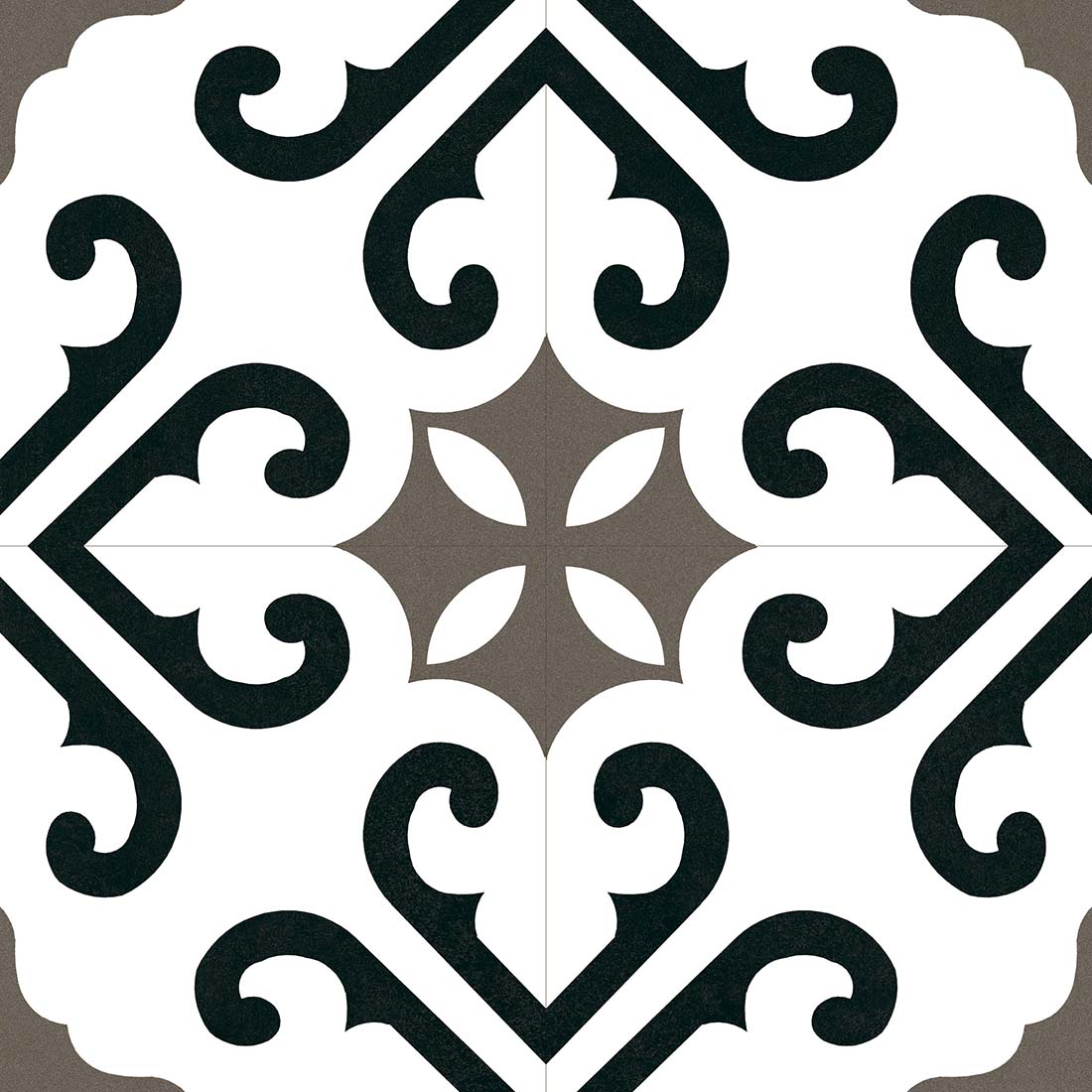 Derby 450×450 (45x45cm) Grey Pattern Porcelain floor tile in a classic victorian themed design which looks stunning on any floor area also walls. Suitable for external (Outside) use too, looking fabulous on door steps etc.