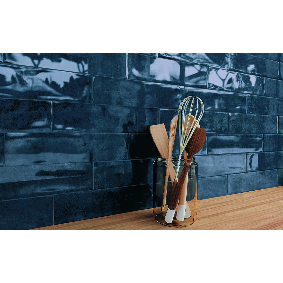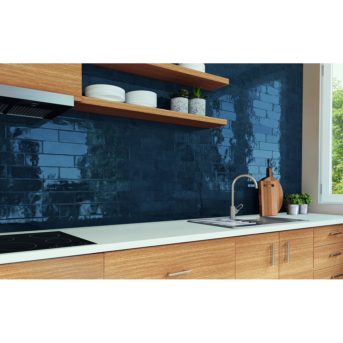 Gemstone Sapphire is a nice clean plain 75x300mm (7.5x30cm) bumpy natural cottage look Gloss glazed ceramic wall tile. Ideal for Kitchens adding that finishing touch and stunning luxurious look but can be used on any walls with equal effect.