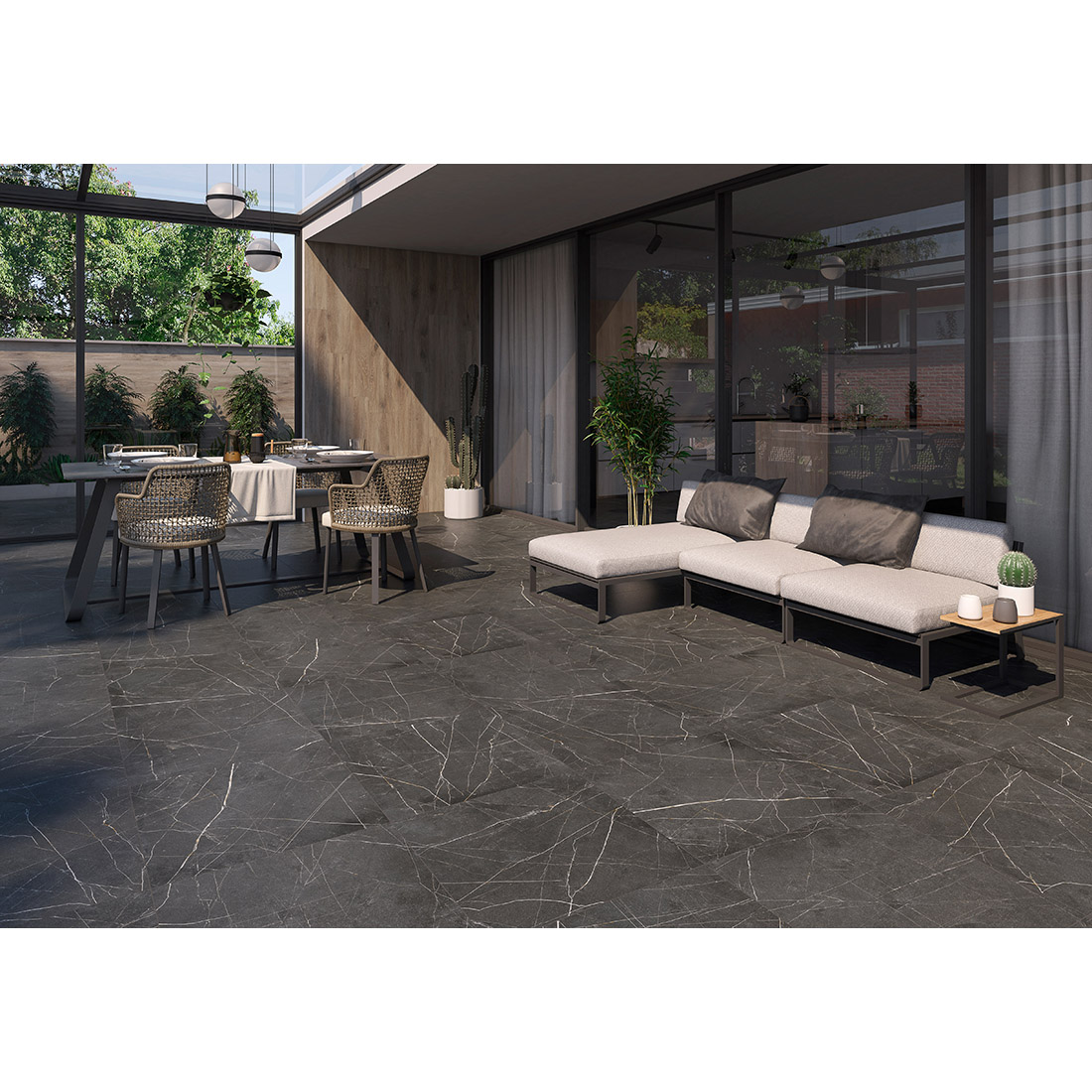 Status Grafito is a classic natural stone effect matt porcelain tile, Suitable for Walls and/or Floors replicating the stylish natural stone effect in Black. A porcelain tile which has the benefit over real natural stone of durability and free of maintenance without compromising the stunning look.
